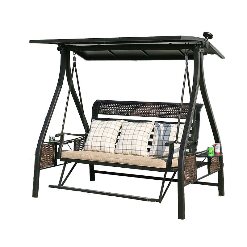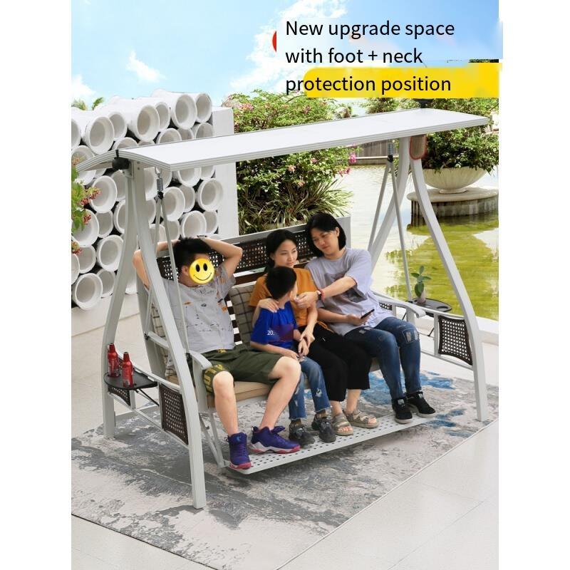 Outdoor Swing Leisure Rocking Chair Garden Villa Balcony Family Hanging Double Hidden Gold: Three Person Swing With Foot Aluminum Alloy Ceiling With Lamp