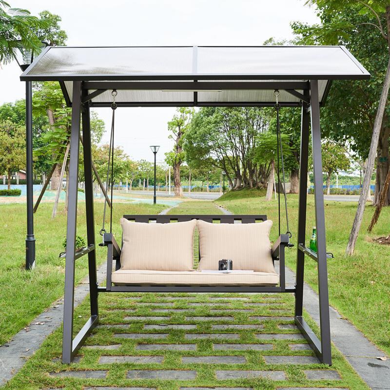 Outdoor Swing Rocking Chair Courtyard Double Hanging Chair Household Balcony Solar Iron Cast Aluminum Swing Luxury Brown + Cushion Pillow