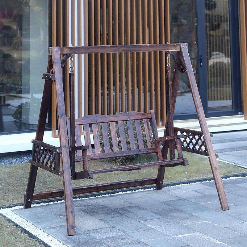Outdoor Swing Wooden Solid Wood Chair Garden Courtyard Anti-corrosion Hanging Hammock Cradle With Ceiling Luxury Swing