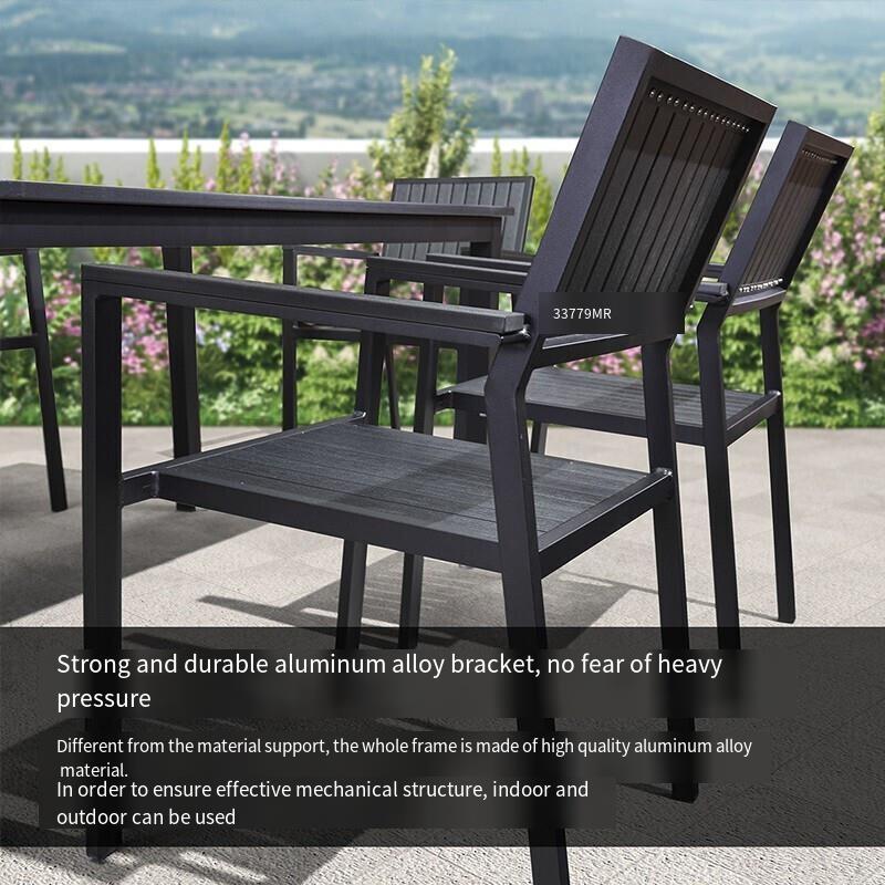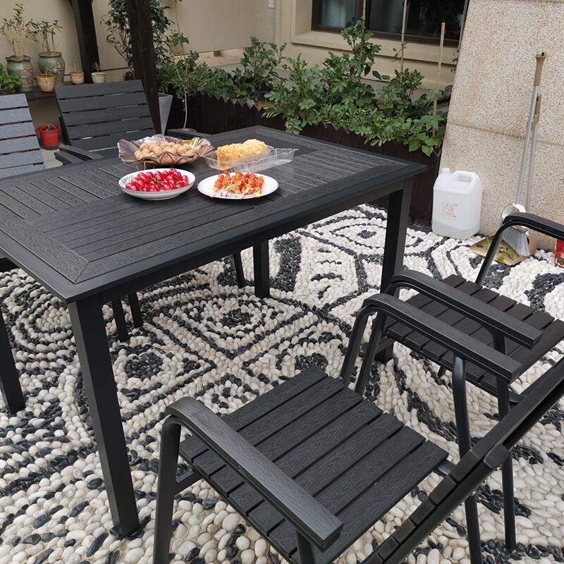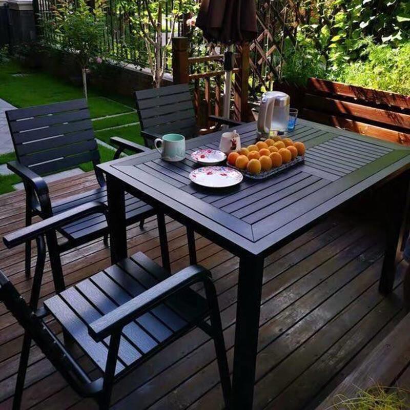 Outdoor Table And Chair Courtyard Leisure Chair Balcony Tea Combination Set Outdoor Antiseptic Wood Plastic Garden Dining Modern Simple Small Round Table Mattel: 4 + 1 [120x80 Mosaic Plastic Wood Long Table]