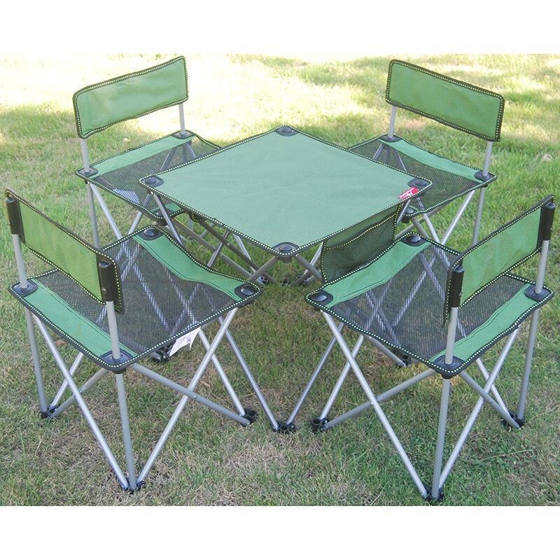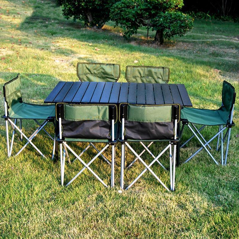 Outdoor Table And Chair Folding Portable Folding Outdoor Portable Ultra Light Car Picnic Self Driving Camping Aluminum Alloy Seven Piece Combination