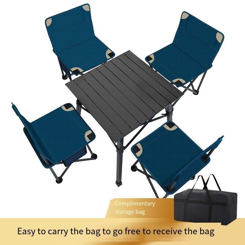 Outdoor Table And Chair Set Folding Aluminum Table Barbecue Picnic Table And Chair Balcony Stool Portable Camping Table And Chair 4 Chairs 1 Table