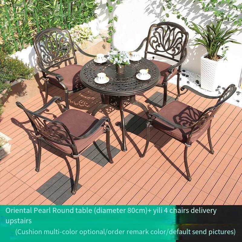 Outdoor Table Chair Courtyard European Style Cast Aluminum Terrace Outdoor Garden Iron Furniture Balcony Leisure 1 Table 2 Chair