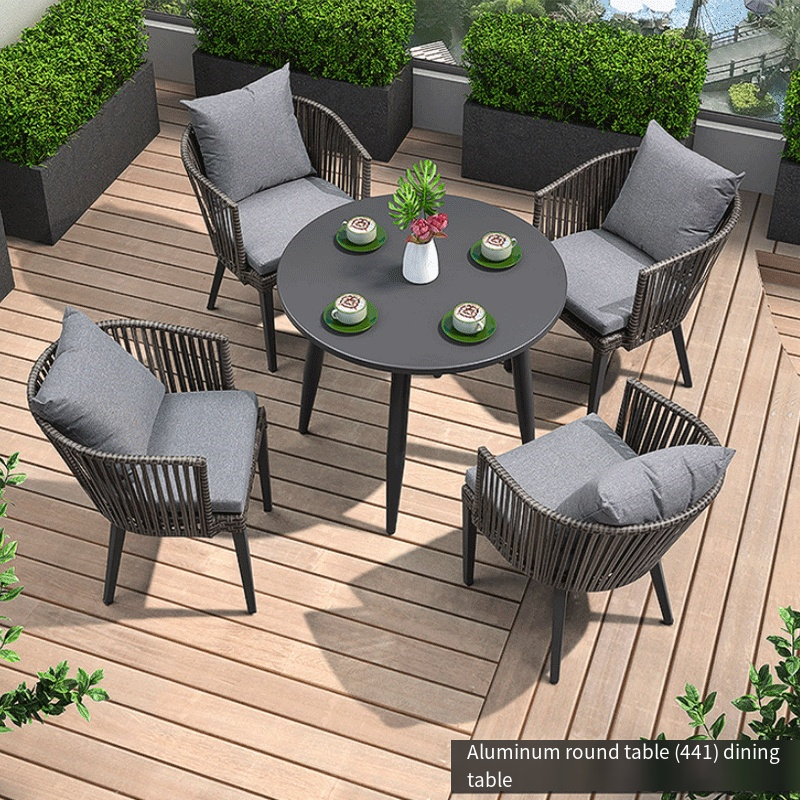 Outdoor Table Chair Dining Table Combination Villa Garden Outdoor Table Chair 2 Aluminum Alloy Rattan Chairs