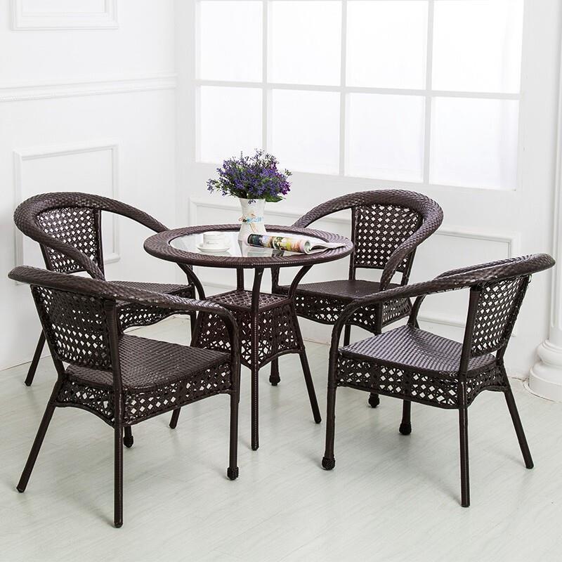 Outdoor Tables And Chairs Balcony Courtyard Milk Tea Shop Coffee Iron Art Furniture Umbrella Outdoor Garden Leisure Combination Rattan Chair 35 Piece Set