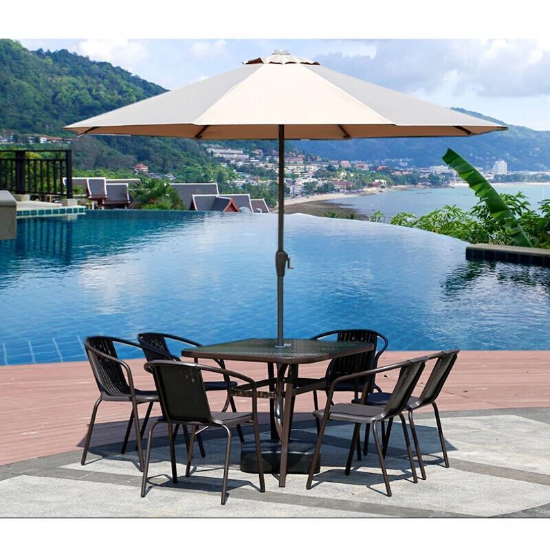 Outdoor Tables And Chairs With Umbrella Combination Open Balcony Courtyard Leisure Rattan Chair Terrace Sunshade Waterproof Rattan 80 Tables + 4 Chairs + Coffee Umbrella
