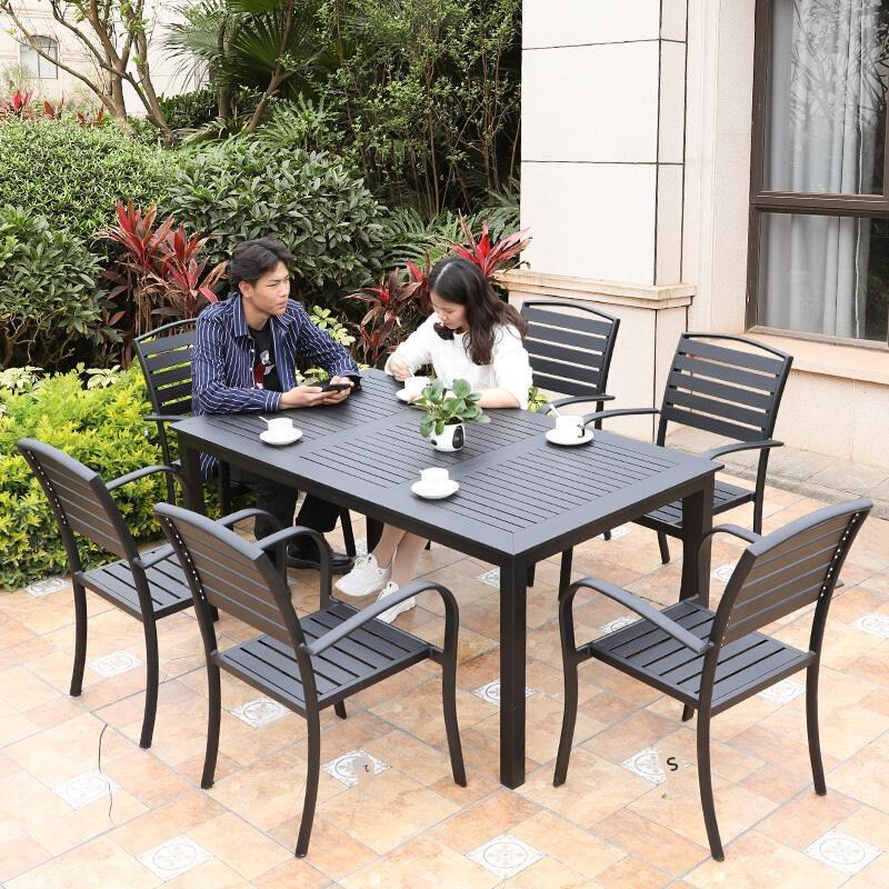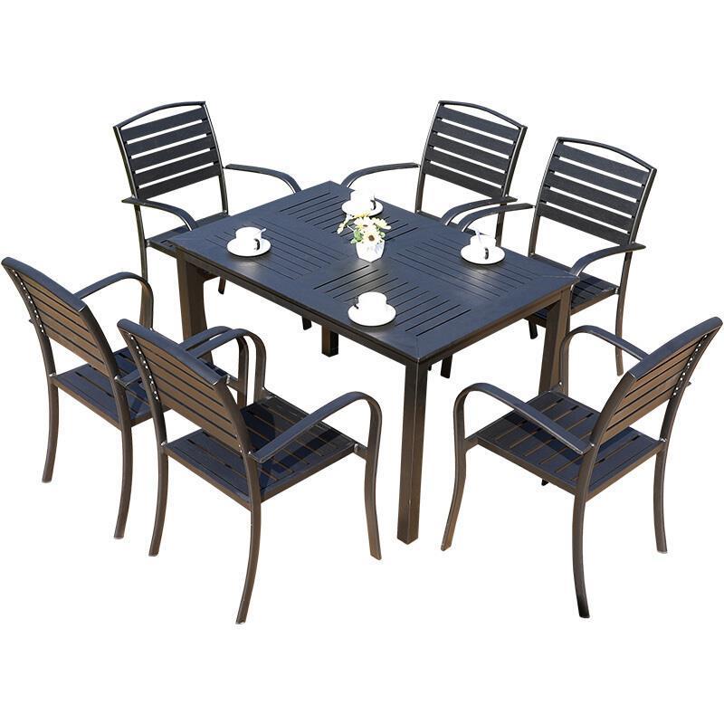 Outdoor Terrace Garden Table And Chair Balcony Aluminum Alloy Furniture Leisure Combination 6 + 1 [with 160cm Aluminum Alloy Three Horizontal Mosaic Table]