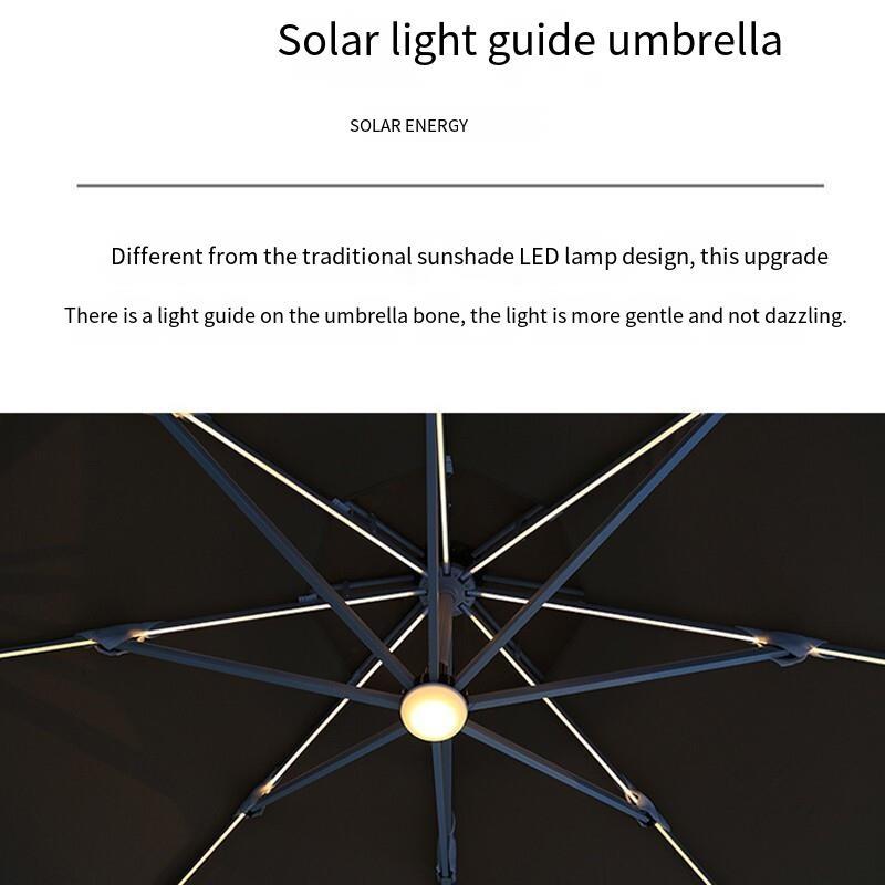Different from the LED light design of traditional parasols, this upgrade adds a light guide strip to the umbrella ribs, which illuminates more softly and does not dazzle the eyes.