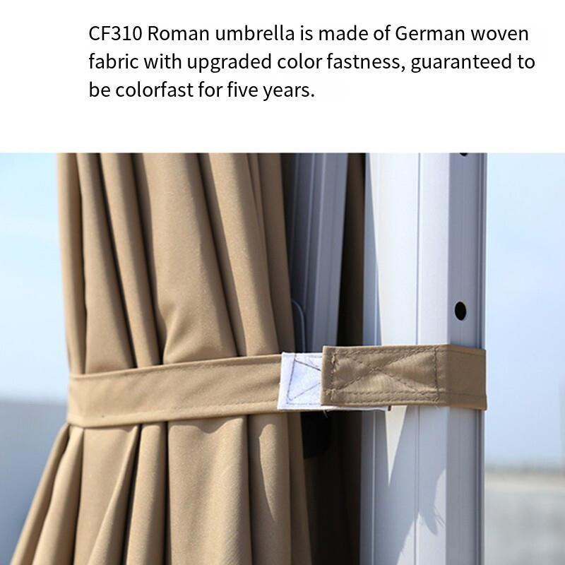 The color fastness of the CF31°Large Roman Umbrella is upgraded with German craftsmanship, which guarantees no fading for five years.