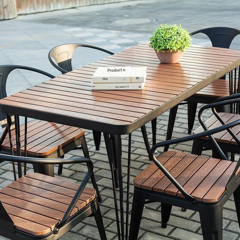 Outdoor Table And Chair Combination Cafe Balcony Garden Plastic Wood Table And Chair Anti-corrosion And Sun Protection One Table And Six Chairs