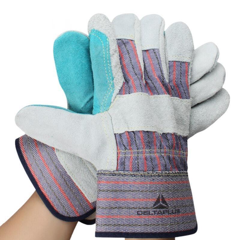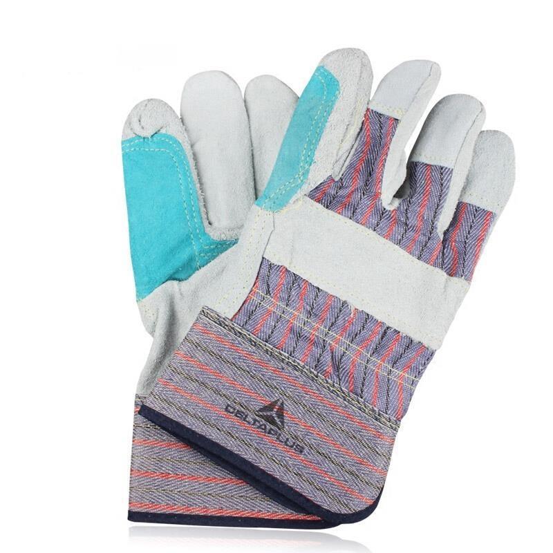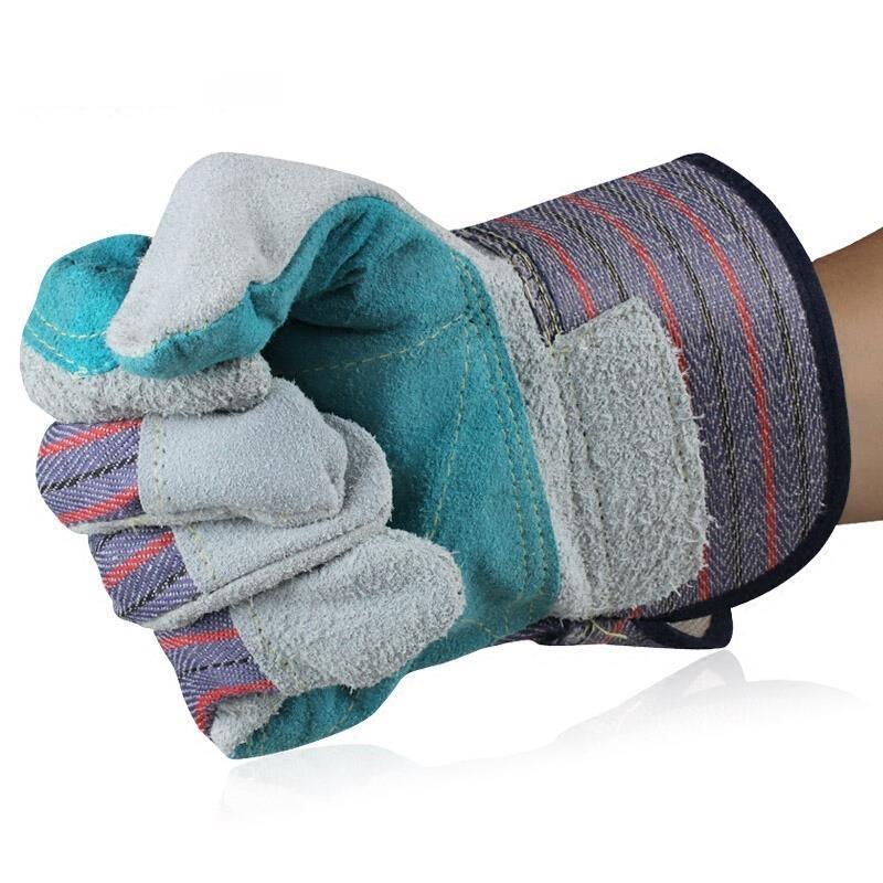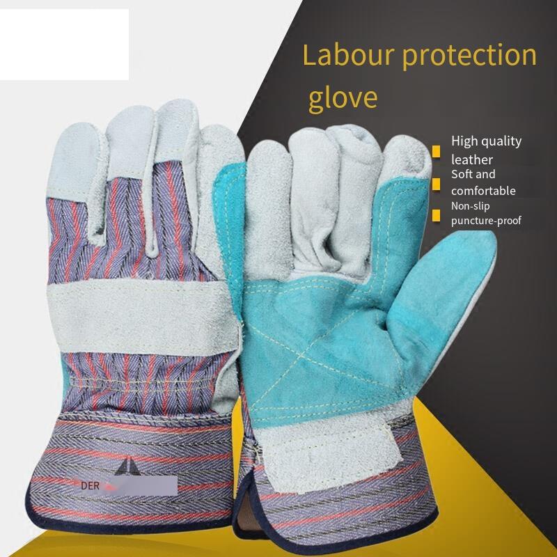 A Pair Protective Gloves Wear Resistant Stab Resistant Tear Resistant Handling Machinery Electric Welding Construction Canvas Leather Gloves L