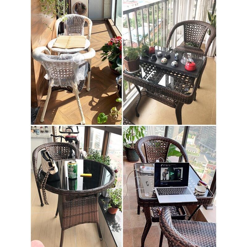Rattan Chair Tea Table Three Piece Set Balcony Household Leisure Weaving Small Outdoor Cafe Dining Table And Chair Combination 65 Integrated Square Table + 2 Chairs (special Price)