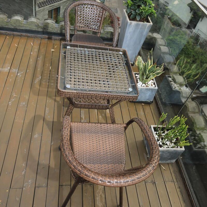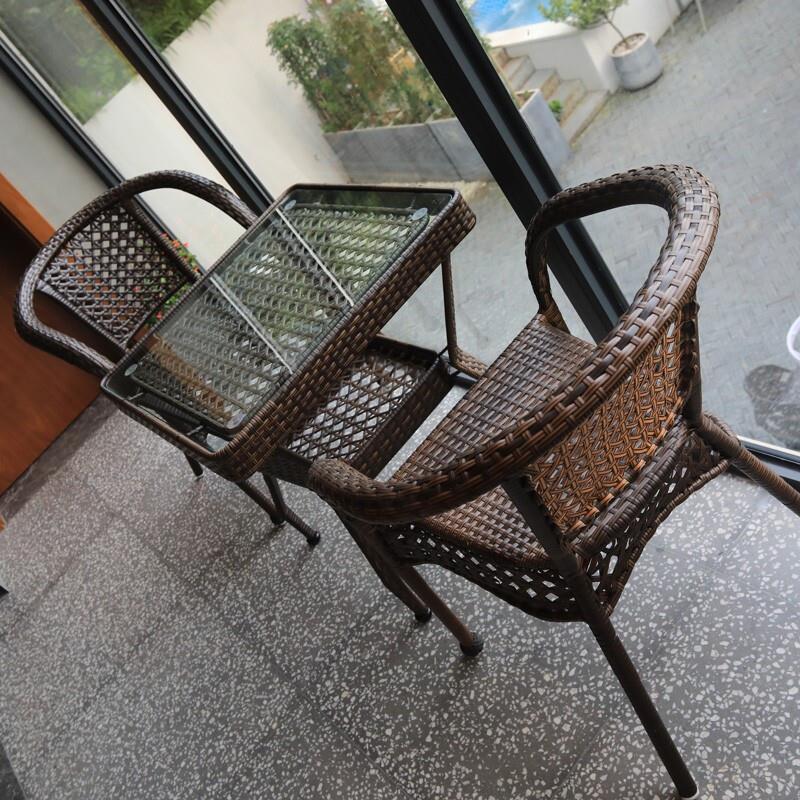 Rattan Chair Tea Table Three Piece Set Balcony Table And Chair Household Leisure Rattan Weaving Table And Chair Square Table + 2 Chairs Thickened