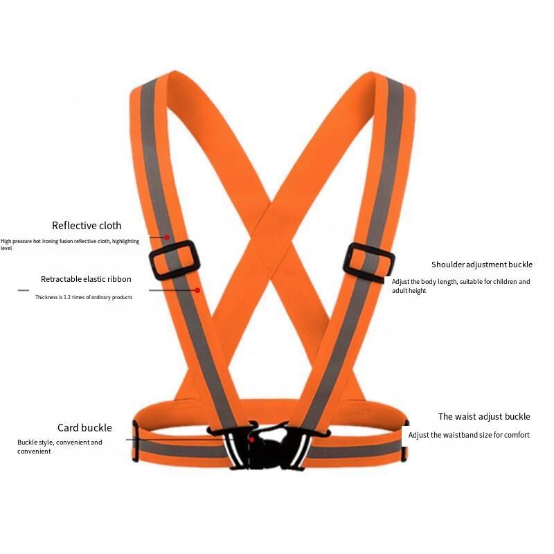 Reflective Vest Elastic Strap Safety Vest High Visibility Fully Adjustable Free Size Safety Gear for Running Jogging Cycling Walking - Orange