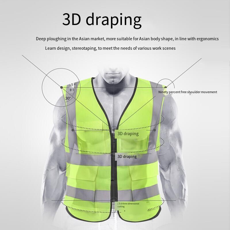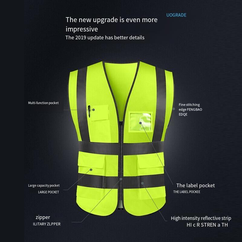 Reflective Vest Reflective Clothing Traffic Cycling Vest Car Safety Warning Vest Police Sanitation Construction Duty Safety Suit Fluorescent Mesh Multi-pocket Zipper