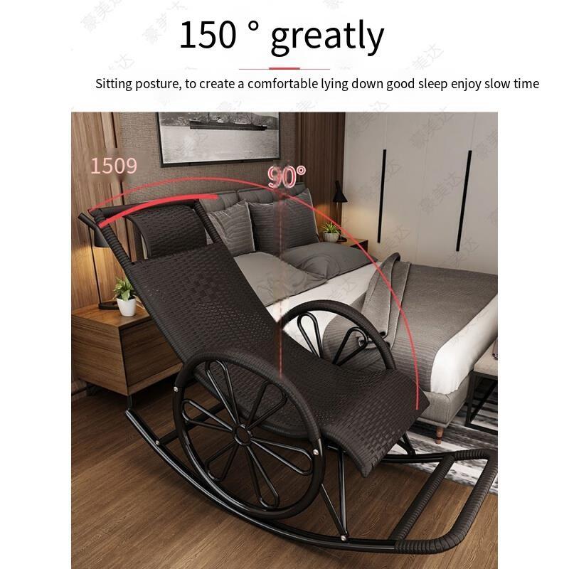 Rocking Chair Recliner Adult Balcony Household Leisure Chair Outdoor Elderly Adult Nap Double Deck Red Brown