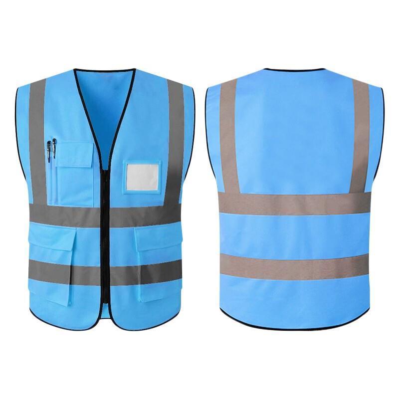 Safety Vest Blue Reflective Vest Multi-Pocket Safety Suit Construction Worker Traffic Sanitation Protection Cloth - Blue