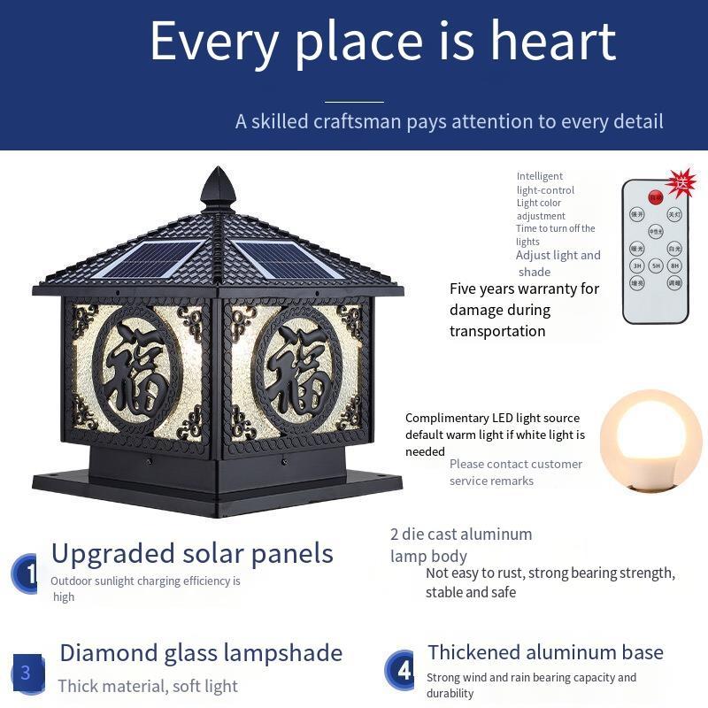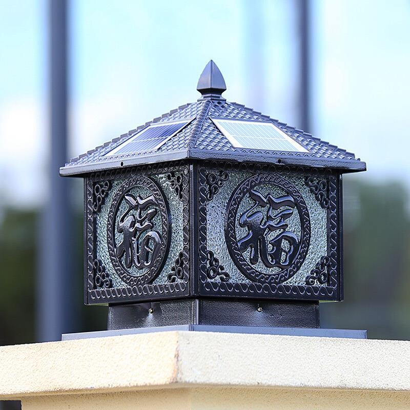 Solar Column Head Lamp New Chinese Fuzi Outdoor Waterproof Household Engineering Fence Lamp Villa Courtyard Lamp Gate Column Lamp