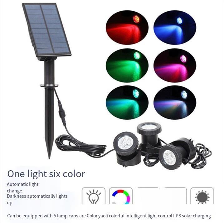 Solar Fish Pond Underwater Lamp Outdoor Waterproof Villa Courtyard Garden Fountain Diving Led Lawn Landscape Spotlight One Drag Five 6-color Dimming