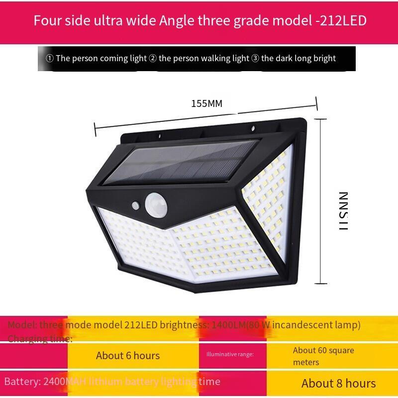 Solar Lamp Human Body Induction Outdoor Waterproof Courtyard Lamp Household Outdoor Wall Lamp Super Bright LED Street Lamp