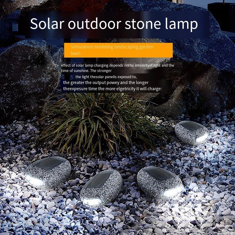 Solar Lamp Outdoor Courtyard Lamp Simulation Stone Lamp Outdoor Garden Lawn Decoration LED Waterproof Floor Lamp Small Stone Lamp White