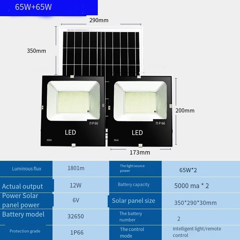 Solar Lamp Street Lamp Outdoor LED Projection Lamp Outdoor Lamp One Driven Two 130w (65w + 65w) Double Head Light Sensing Courtyard Lamp