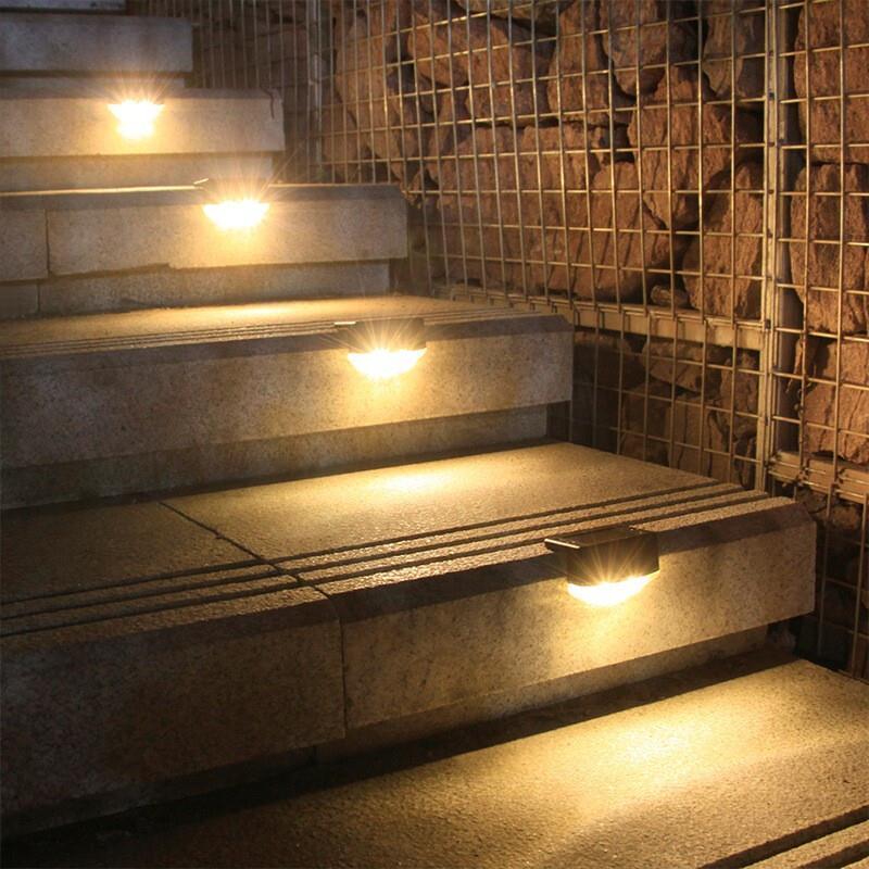 Solar Outdoor Courtyard Lamp Stair Wall Lamp Stair Lamp Stage Lamp LED Guide Lamp Garden Waterproof Lighting Lawn Lamp Landscape Lamp 4 Pieces