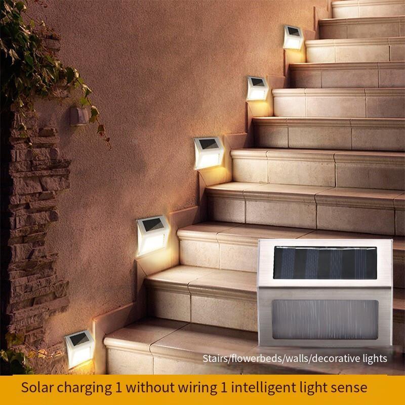 Solar Outdoor Courtyard Lamp Stair Fence Wall Lamp Waterproof LED Platform Ladder Lamp Household Garden Villa Landscape Guide Lamp 4 Sets White Light