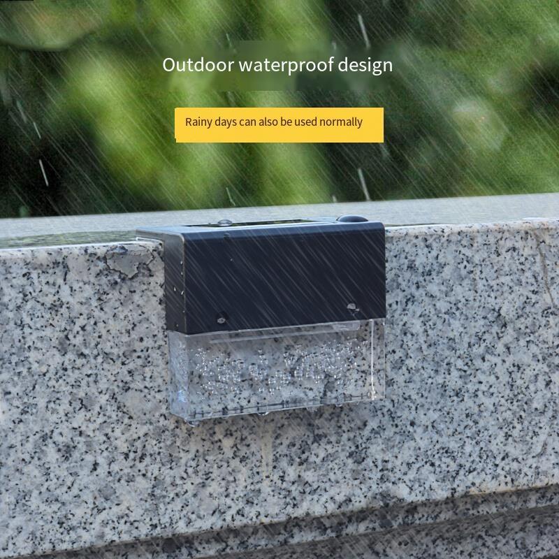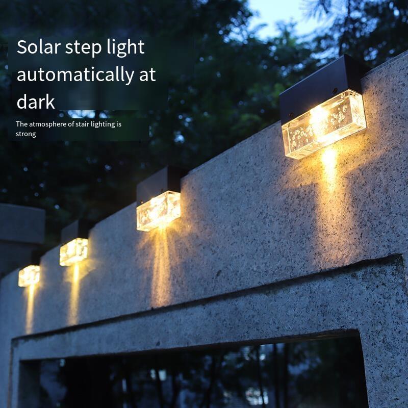 Solar Outdoor Lamp Courtyard Wall Street Lamp Induction Garden Villa Waterproof Decoration Steps Stairs Enclosure Color Lamp 4 Sets Square Warm Light
