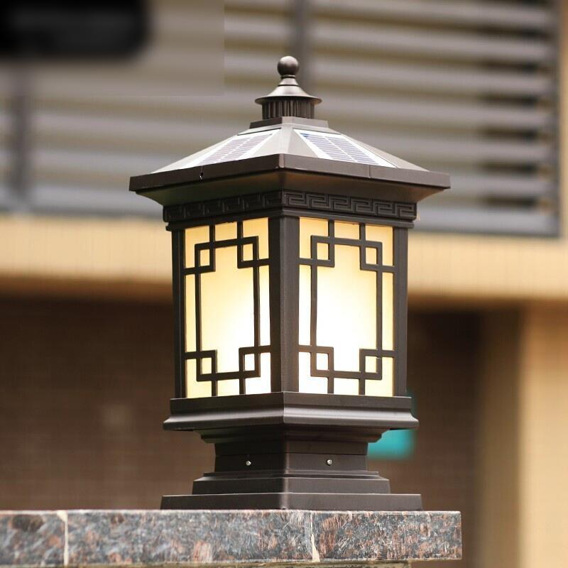 Solar Wall Column Head Lamp New Chinese Outdoor Waterproof Courtyard Lamp Outdoor Gate Villa Garden Column Lamp Solar 7-inch Building Wall Lamp