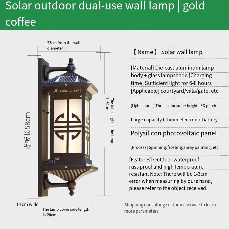 Solar Wall Lamp Waterproof Chinese Outdoor Courtyard Aisle Villa Lamp Antique Outdoor Terrace Gate Garden Lamp 15w