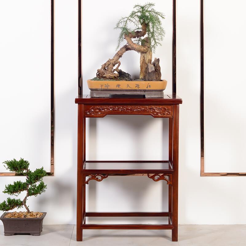 Solid Wood Multi-layer Flower Rack Storage Wooden Rack Living Room Fish Tank Rack Bonsai Viewing Strange Stone Table Chinese Stone Table Base Display Long Table Chestnut Red Length 55 Width 35 Height 70