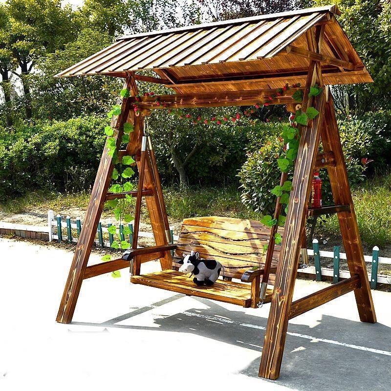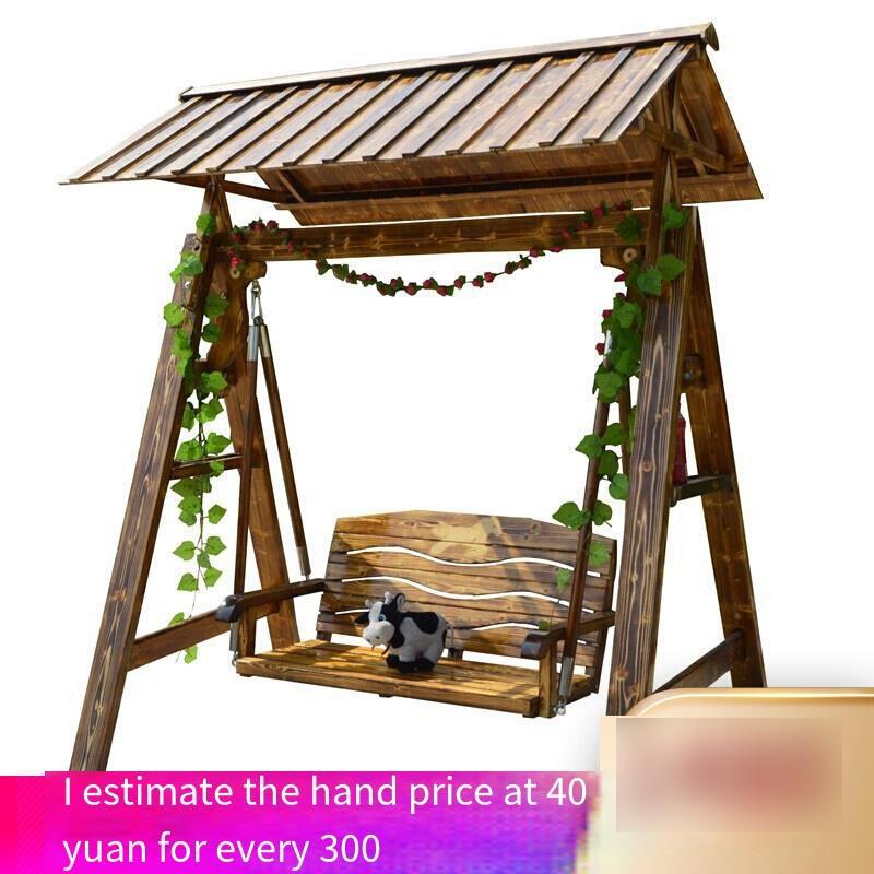 Solid Wood Outdoor Swing Courtyard Double Rocking Chair Antiseptic Adult Hanging Garden Terrace Leisure Thickened Triangular Top Swing A
