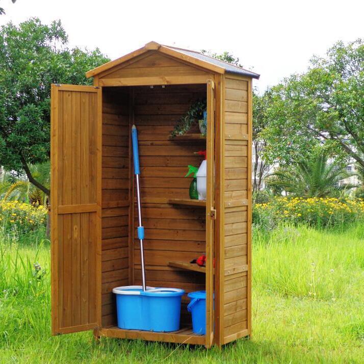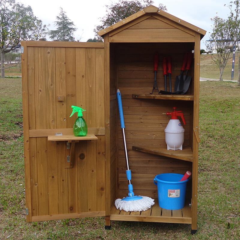 Outdoor Tool Room Garden Tool Cabinet Garden Sundry Room Solid Wood Outdoor Storage Cabinet Waterproof Sunscreen Balcony Outdoor Log Color Single Door
