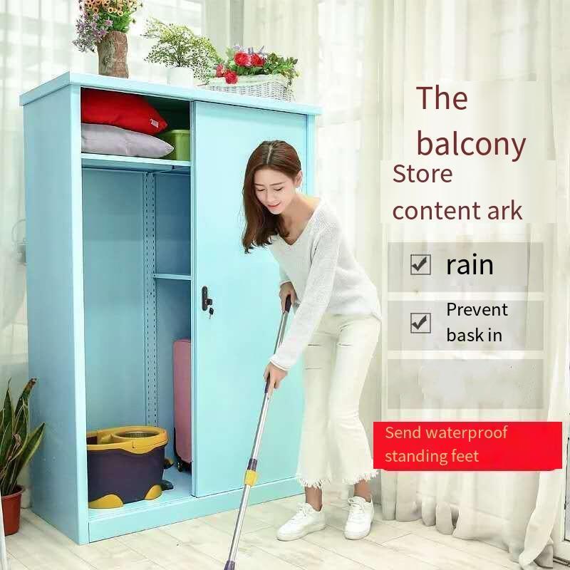 Steel Balcony Cabinet Waterproof Sunscreen Balcony Locker Outdoor Garden Storage Cabinet Tools And Sundries Storage Cabinet Bright Yellow Open 950 * 800 * 500
