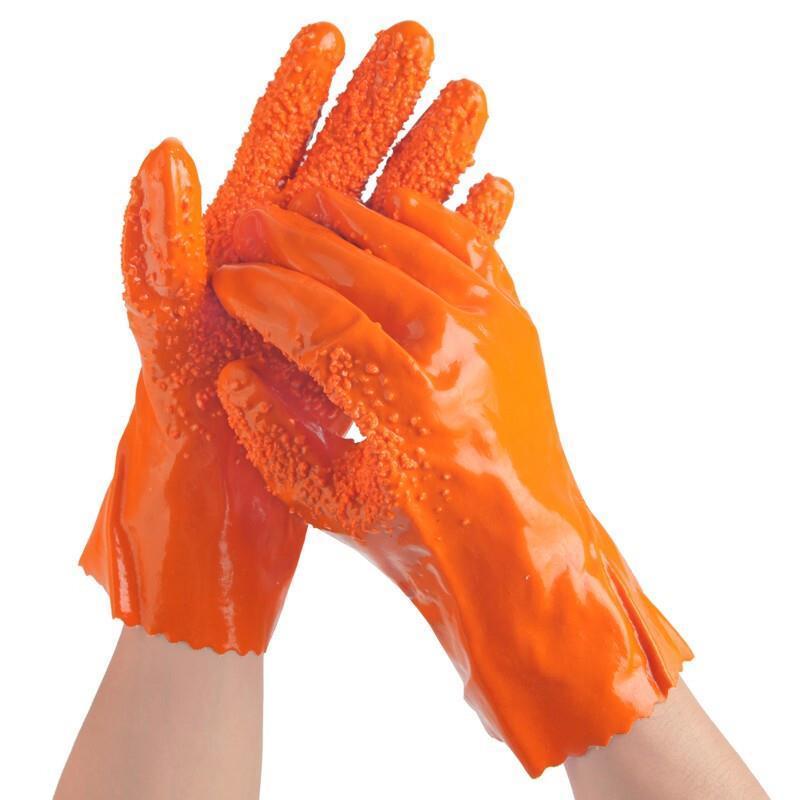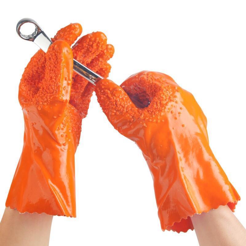Full Immersion Rubber Labor Protection Gloves Thickened Particles Antiskid Wear Resistant Acid And Alkali Resistant Gloves 5 Pairs / Pack