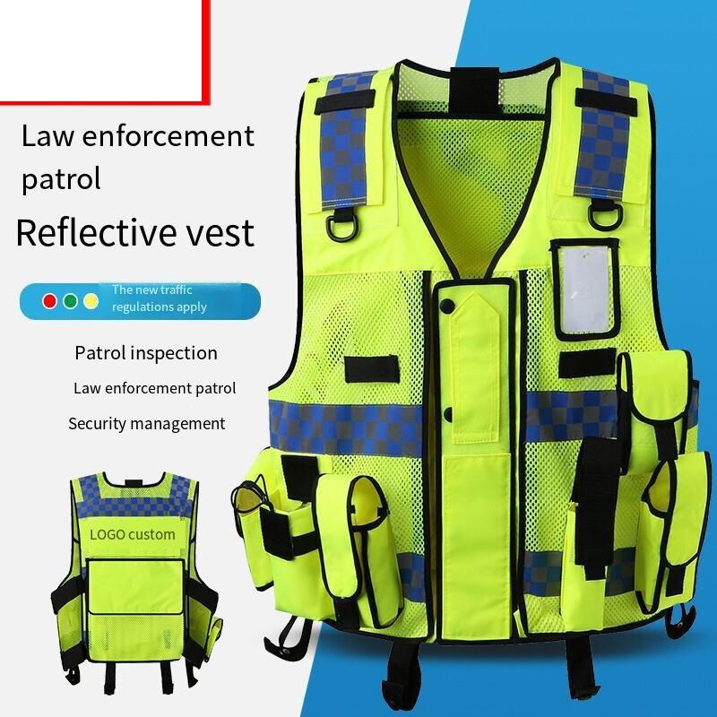 Reflective Vest, Traffic And Road Administration Protective Vest, Patrol Net, Breathable Fluorescent Clothing, Multifunctional Reflective Vest, Fluorescent Yellow