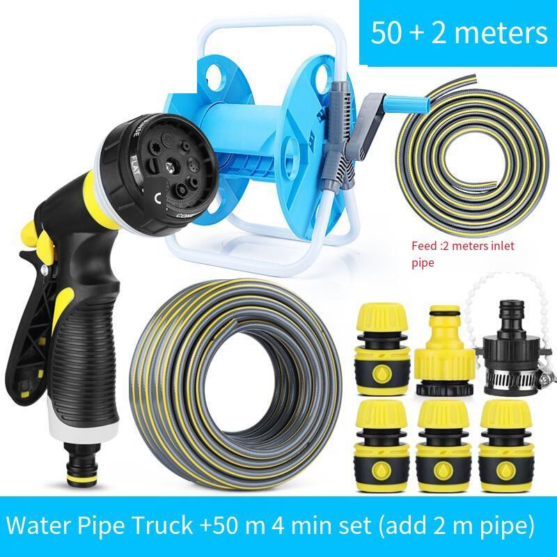 Watering Flowers Water Guns Sprinkler Dishes Artifact Watering Hose Garden Farm Irrigation Spray Head Multi-functional High-pressure Washing Car Water Gun Set Water Hose +50 Meter 4 Points Suit (Add 2m Tube)