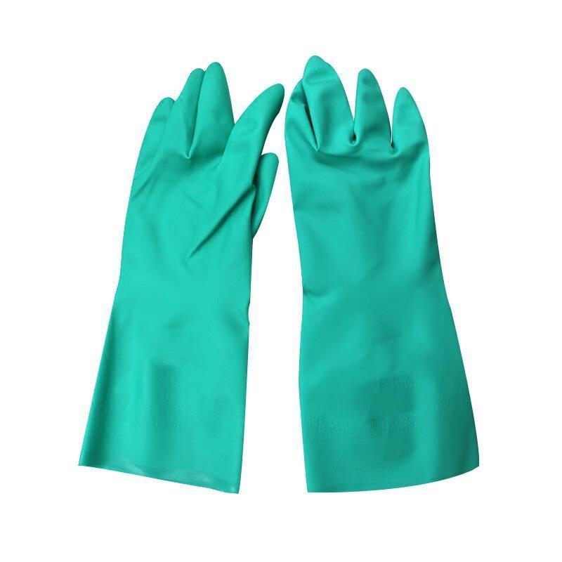 Wear Resistant Acid Resistant And Oil Resistant Industrial Gloves Nitrile Rubber Cleaning And Protective Gloves Green 1 Pair