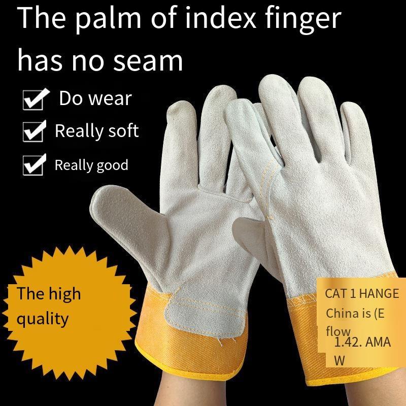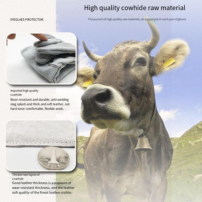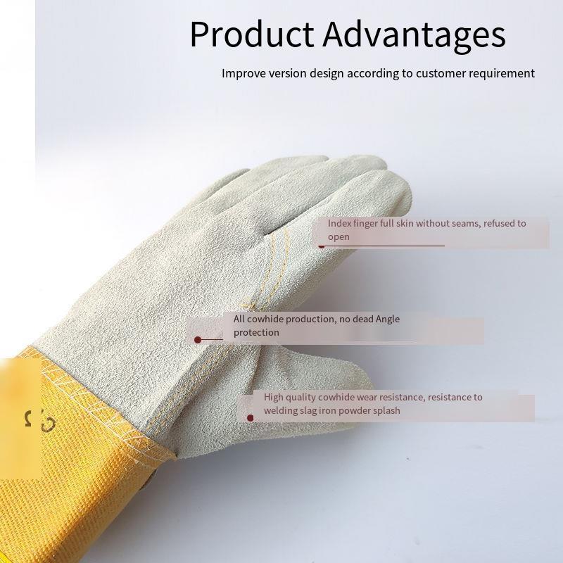 Welding Gloves Cowhide Welder Anti Scalding Labor Gloves Soft Wear-Resistant Protection Gloves for High Temperature Welding