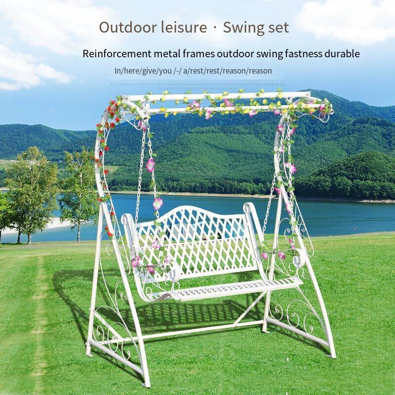White Double Swing Basket Hanging Chair Iron Outdoor Indoor Outdoor Courtyard Garden Balcony Rocking Chair S Frame Grid