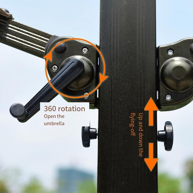 Hand crank clockwise to open the umbrella, counterclockwise to close the umbrella