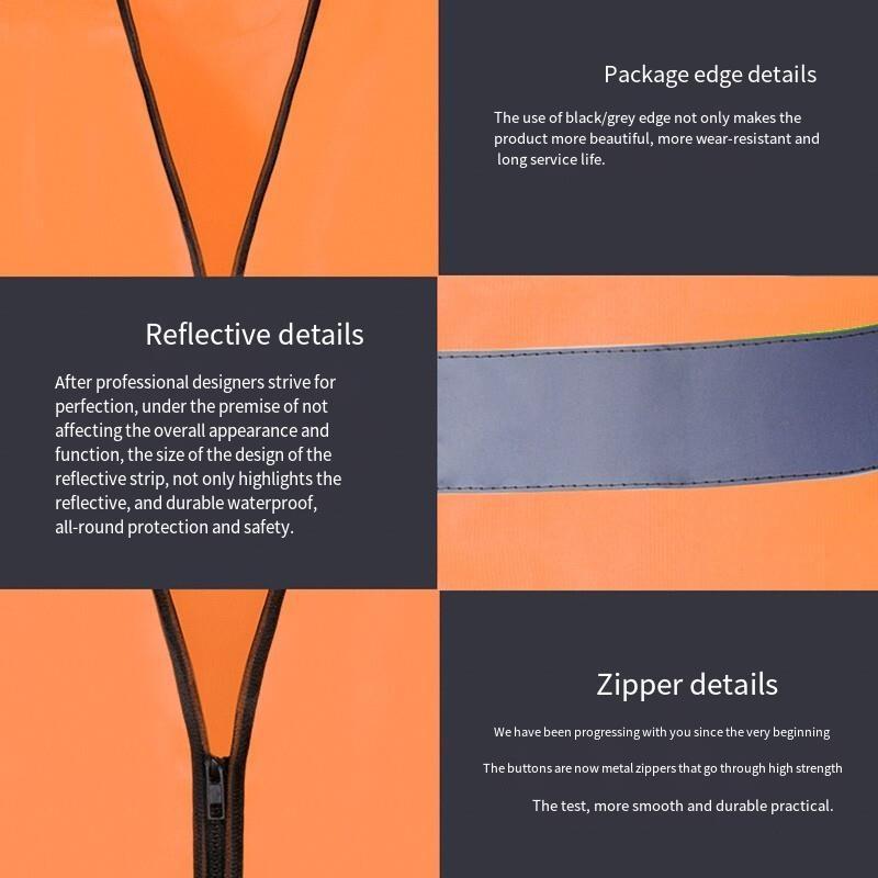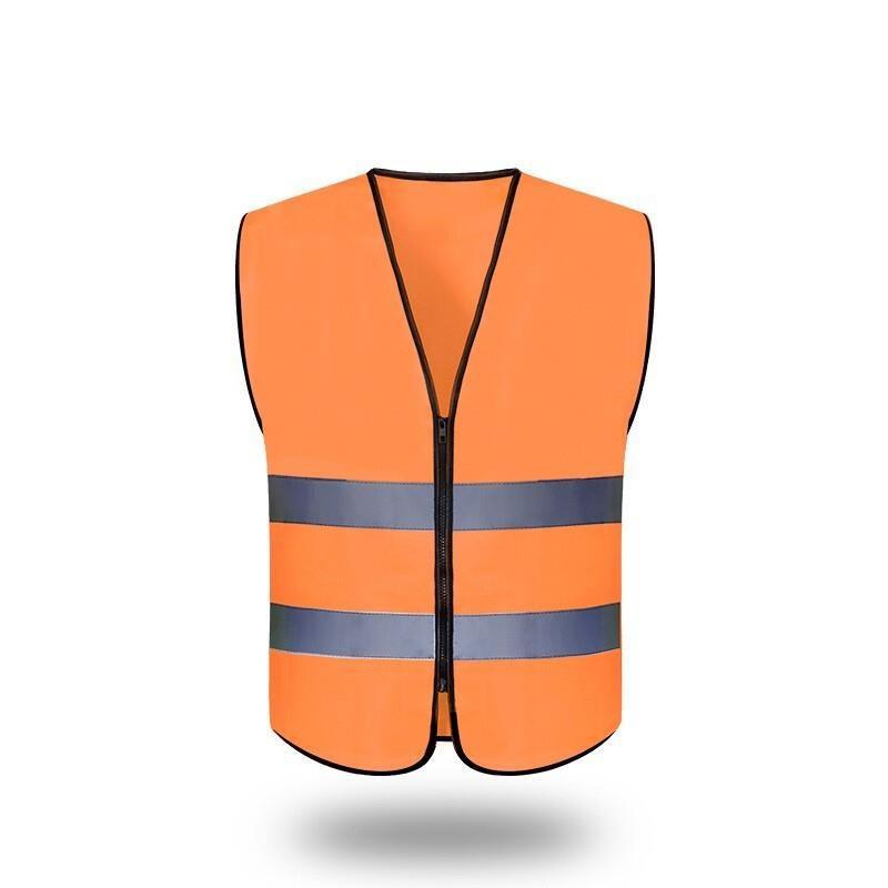 Zipper Reflective Safety Vest Car Traffic Safety Warning Vest Double Reflective Strip for Sanitation Construction Riding - Fluorescent Orange
