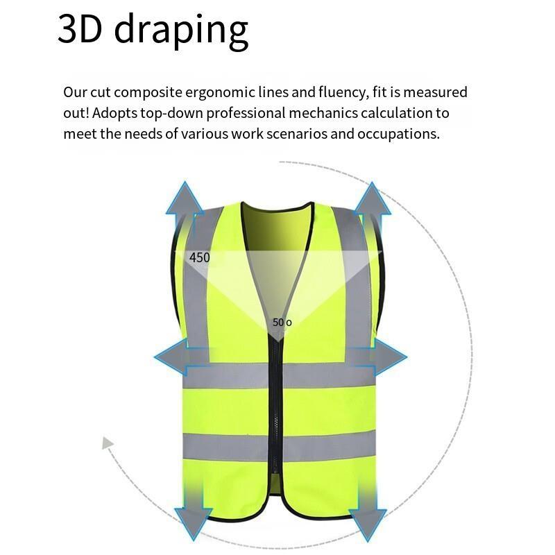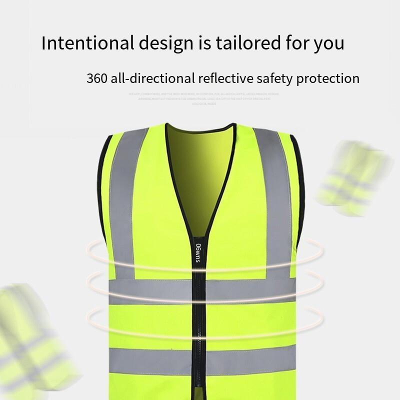 Zipper Reflective Vest Fluorescent Yellow Safety Warning Vest 4 Reflective Strips Safety Vest for Environmental Sanitation Construction Riding Running